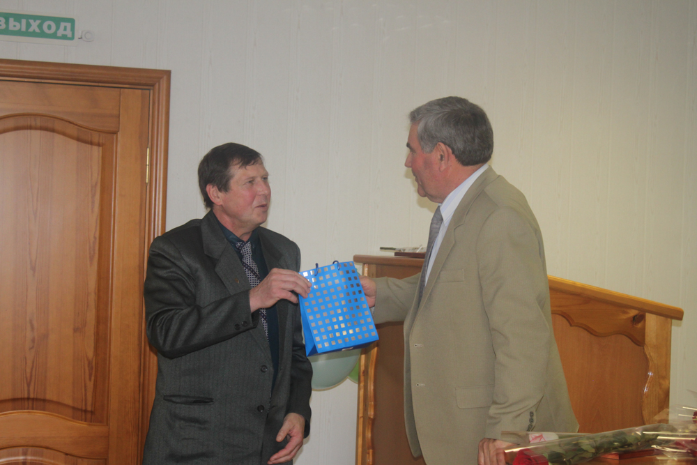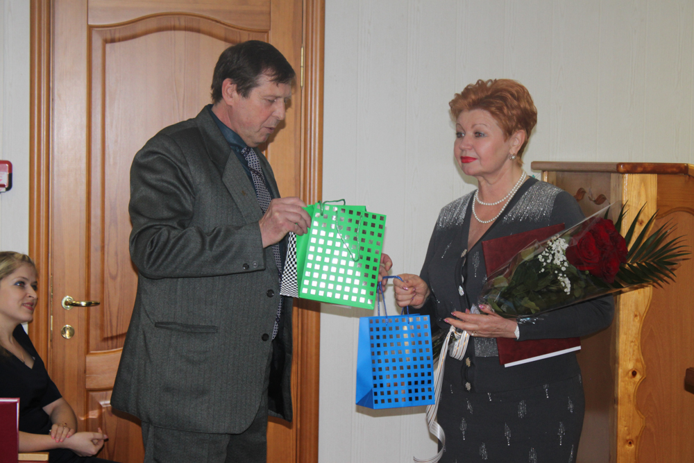 Фото 2 А. Г. Пикалов вручает памятные сувениры А.И. Масловой;