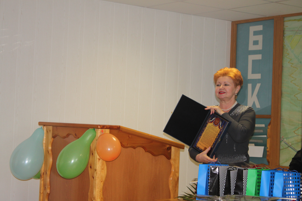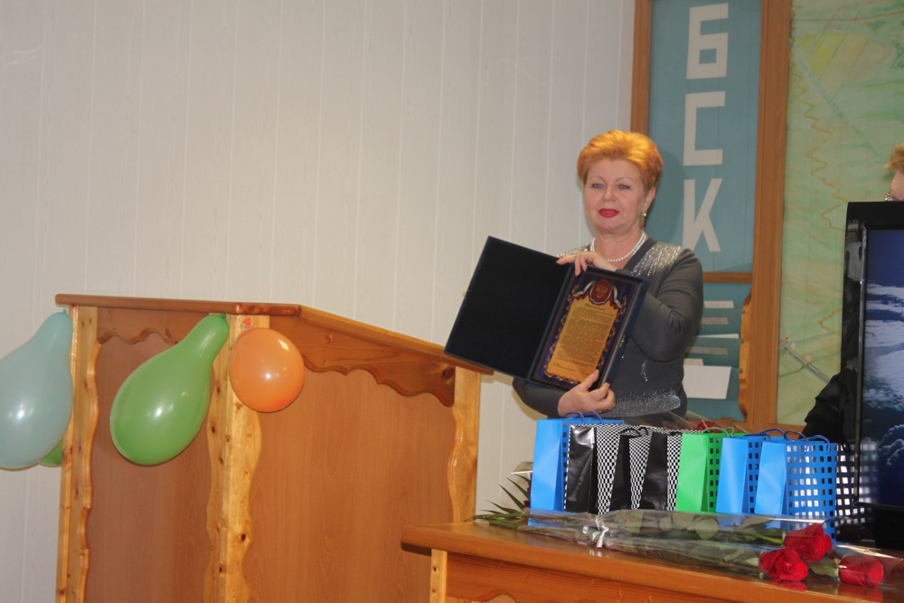 Фото 3 А.И. Маслова вручает поздравительный адрес УС БСК;