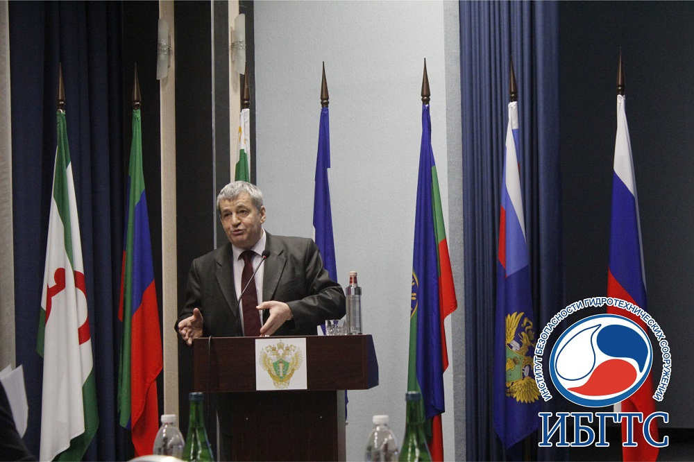 Директор Института безопасности ГТС, д. т. н., профессор, академик РАН, Заслуженный деятель науки Российской Федерации, Виктор Алексеевич Волосухин за высокий вклад и многолетнее сотрудничество с Ростехнадзором удостоен медали и представил следующий доклад на мероприятие: