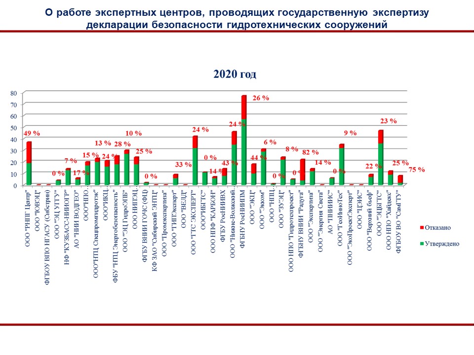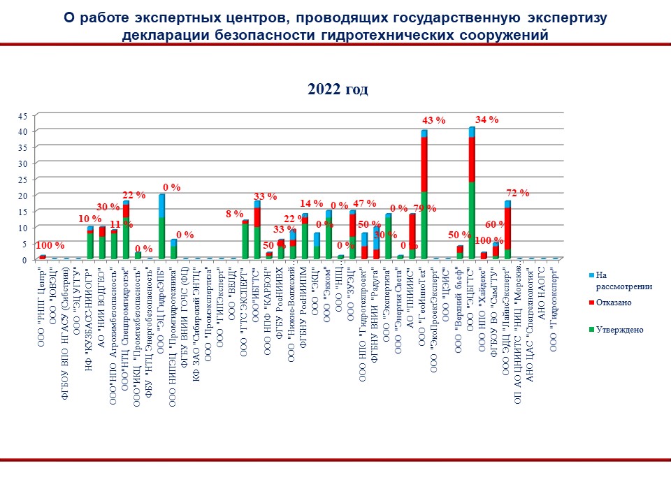 На совещании был рассмотрен вопрос анализа работы экспертных центров. В настоящее время перечень экспертных центров включает 44 организации, из которых 10 имеют соответствующую лицензию по работе с секретными документами. Работают эти центры неравномерно, некоторые на протяжении нескольких лет не выполняют экспертизы ДБ ГТС. На слайдах можно увидеть динамику работы центров за 2020-2022 года.